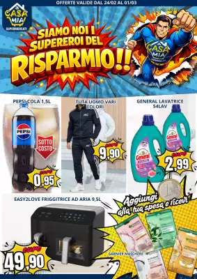 Ogni settimana viene pubblicato un nuovo volantino Supermercati di A Casa Mia. Su questa pagina trovi sempre il Volantino A Casa Mia più recente, valido dal 24-02-2026 al 01-03-2026. In questo modo sei sempre aggiornato sulle iniziative locali a Santa Maria Capua Vetere e sai quando il nuovo volantino è disponibile.