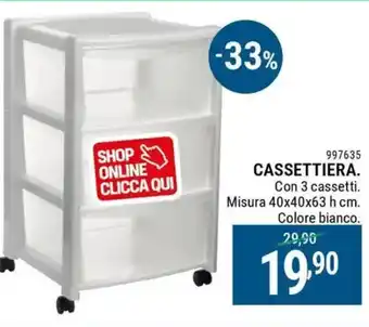 Cassettiera è disponibile questa settimana da Cfadda con una promozione interessante. In questa pagina trovi tutte le informazioni sui prezzi e sulle condizioni attuali. Esplora anche altre offerte legate a Cassettiera per valutare ogni possibilità di risparmio.