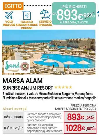 Marsa alam sunrise anjum resort ora in promozione da Eurospin ✅ Offerta valida dal 7-04 al 19-04.