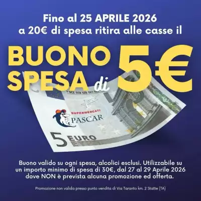 Ogni settimana viene pubblicato un nuovo volantino Ingrosso di Gruppo Pascar. Su questa pagina trovi sempre il Volantino Gruppo Pascar più recente, valido dal 16-04-2026 al 25-04-2026. In questo modo sei sempre aggiornato sulle iniziative locali a Crispiano e sai quando il nuovo volantino è disponibile.