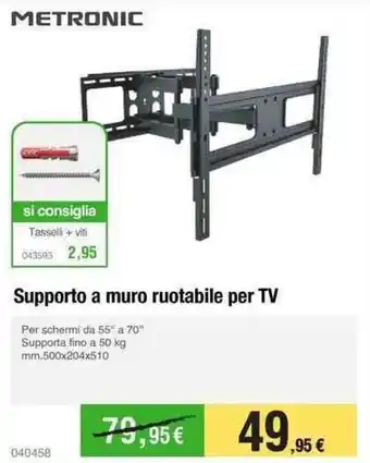METRONIC Supporto a muro ruotabile per TV ora in promozione da Handy fai da te ✅ Offerta valida dal 7-03 al 29-03.