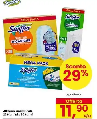 Questa offerta è disponibile in diversi negozi, ma dovrai visualizzare tutti i prodotti per ottenere l'offerta 48 Panni umidificati, 23 Piumini o 90 Panni più vantaggiosa. Se vuoi scoprire quale prodotto presenta lo sconto maggiore in un altro negozio, controlla la categoria "Supermercati". Possono interessarti anche queste offerte: Swiffer' catturapolvere ricarica 60 panni piumini ricarica 14 piumini, SWIFFER Duster, 9 piumini - Dry, 36 panni & Panni Magic.