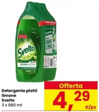 Questo Detergente piatti limone Svelto è attualmente in promozione presso Interspar. Tutte le informazioni sul prezzo attuale, le condizioni dell’offerta e il periodo di validità sono disponibili su questa pagina. Scopri anche promozioni comparabili per Detergente piatti limone Svelto e scegli l’opzione più vantaggiosa.