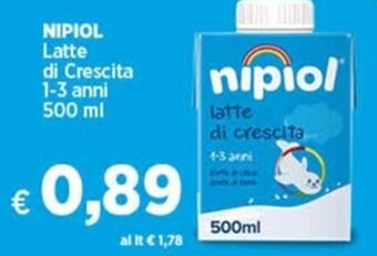 | Nipiol Latte Crescita 3 500 ml | Iper Super Conveniente | €0,89 | 31 maggio 2023 | 12 giugno 2023 | |||