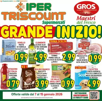 Ogni settimana viene pubblicato un nuovo volantino Supermercati di Iper Triscount. Su questa pagina trovi sempre il Volantino Iper Triscount più recente, valido dal 07-01-2026 al 15-01-2026. In questo modo sei sempre aggiornato sulle iniziative locali a Roma e sai quando il nuovo volantino è disponibile.