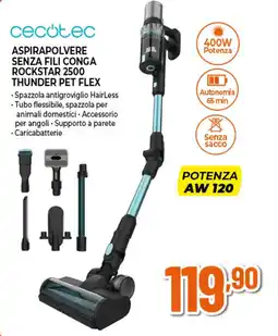Cecotec aspirapolvere senza fili conga rockstar 2500 thunder pet flex