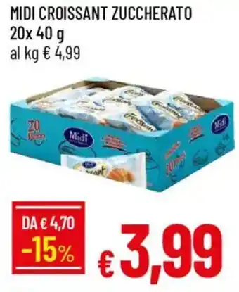 Questo Midi croissant zuccherato è attualmente in promozione presso IperFamila. Tutte le informazioni sul prezzo attuale, le condizioni dell’offerta e il periodo di validità sono disponibili su questa pagina. Scopri anche promozioni comparabili per Midi croissant zuccherato e scegli l’opzione più vantaggiosa.