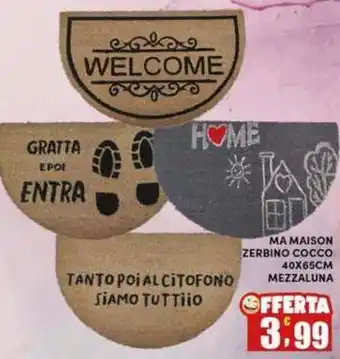 Mamaison zerbino cocco mezzaluna è ora in offerta da Maury's, valido dal 29-01-2026 fino al 14-02-2026. Trovi qui tutte le informazioni utili per acquistarlo al miglior prezzo. Ordina Mamaison zerbino cocco mezzaluna online tramite il sito web di Maury's. Su offertevolantini trovi ogni giorno le promozioni più convenienti.