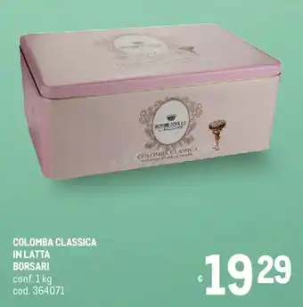 Colomba classica in latta BORSARI ora in promozione da Metro ✅ Offerta valida dal 5-03 al 4-04.