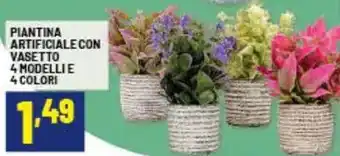 Piantina artificiale con vasetto 4 modellie 4 colore ora in promozione da Risparmio Casa ✅ Offerta valida dal 11-02 al 21-02.