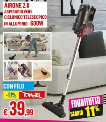 Airone 2.0 aspirapolvere ciclonico telescopico in alluminio-600W ora in promozione da Satur ✅ Offerta valida dal 6-02 al 8-03.