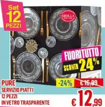 Offerta Pure servizio piatti 12 pezzi in vetro trasparente attiva da Satur