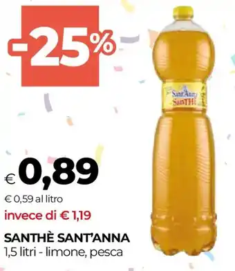 Questa offerta è disponibile in diversi negozi, ma dovrai visualizzare tutti i prodotti per ottenere l'offerta Santhè SANT'ANNA più vantaggiosa. Se vuoi scoprire quale prodotto presenta lo sconto maggiore in un altro negozio, controlla la categoria "Supermercati". Possono interessarti anche queste offerte: SanThè Sant'Anna, Santhè SANT'ANNA & The santhè sant'anna pesca/limone.