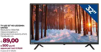 TV LED 32" HD LED32H64 UNITED ora in promozione da Unicoop ✅ Offerta valida dal 11-02 al 25-02.