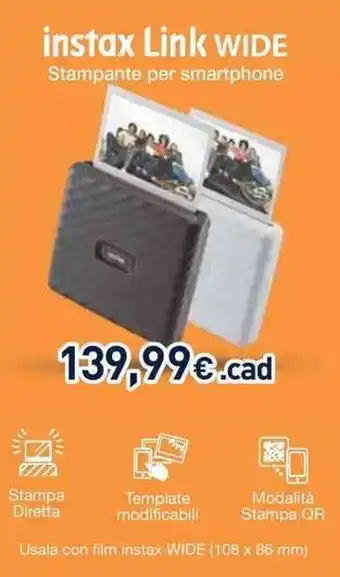 instax link wide ora in promozione da Unieuro ✅ Offerta valida dal 17-04 al 30-04.