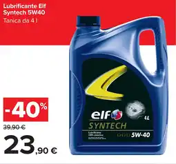 | Lubrificante Elf Syntech 5W40 4 l | Carrefour | €39,90 | €27,90 | -30% | 27 gennaio 2026 | 05 febbraio 2026 | |