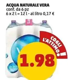 | ACQUA NATURALE VERA conf. da 6 pz - 6x2 l | PENNY | €2,10 | 20 luglio 2023 | 30 luglio 2023 | |||