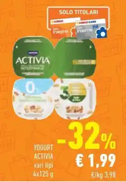 | 1 | Yogurt ACTIVIA | Conad | €2,93 | €1,99 | -32% | 21 aprile 2026 | 05 maggio 2026 | Guarda l'offerta | |