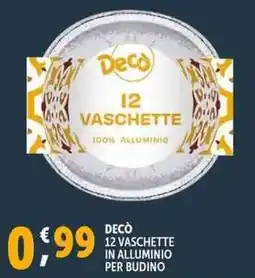 | Decò 12 vaschette in alluminio per budino | Deco Supermercati | €0,99 | 30 gennaio 2026 | 08 febbraio 2026 | |||