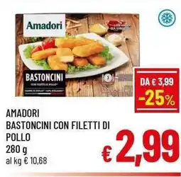 | Amadori bastoncini con filetti di pollo 280 g | A&O | €3,99 | €2,99 | -25% | 25 febbraio 2026 | 10 marzo 2026 | |