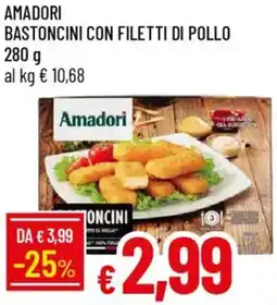 | Amadori bastoncini con filetti di pollo 280 g | Galassia | €3,99 | €2,99 | -25% | 22 gennaio 2026 | 01 febbraio 2026 | |
