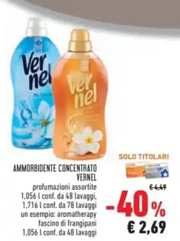 | Vernel Ammorbidente Concentrato 46 o 48 lavaggi, 1,15 o 1,20 litri | Conad | €3,49 | €2,49 | €1,00 Sconto | 03 febbraio 2023 | 16 febbraio 2023 | |