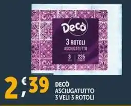 | DECÒ ASCIUGATUTTO 2 ROTOLI 2 VELI | Deco Supermercati | €1,49 | 07 giugno 2024 | 17 giugno 2024 | |||