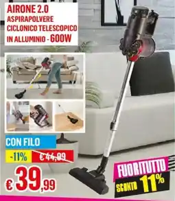 Airone 2.0 aspirapolvere ciclonico telescopico in alluminio-600W