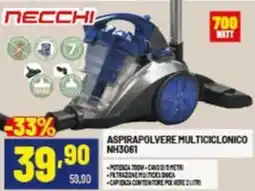 | NECCHI ASPIRAPOLVERE MULTICICLONICO NH3061 | Risparmio Casa | €29,90 | 20 settembre 2025 | 12 ottobre 2025 | |||