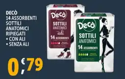 | DECÒ assorbenti normal pz 12 | Deco Supermercati | €1,99 | 04 agosto 2023 | 14 agosto 2023 | |||