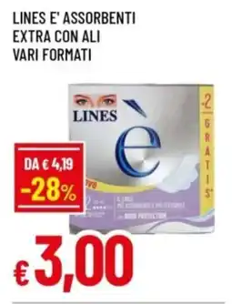 | LINES E' ASSORBENTI EXTRA CON ALI VARI FORMATI | Famila | €3,00 | 05 febbraio 2026 | 18 febbraio 2026 | |||