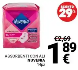 | Assorbenti con ali NUVENIA 14 pz | Supermercati Gulliver | €1,99 | 30 agosto 2025 | 08 settembre 2025 | |||