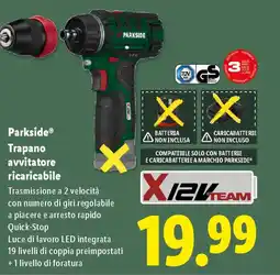 | Parkside Trapano avvitatore ricaricabile | Lidl | €39,99 | 03 novembre 2025 | 09 novembre 2025 | |||