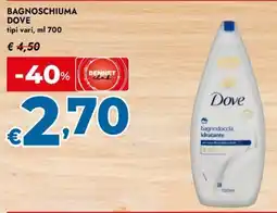 | 1 | Bagnoschiuma DOVE 700 ml | Bennet | €4,50 | €2,70 | -40% | 02 gennaio 2026 | 14 gennaio 2026 | Guarda l'offerta | |