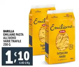 | BARILLA emiliane pasta all'uovo varie trafile g 250 | Deco Supermercati | €1,29 | 14 luglio 2023 | 23 luglio 2023 | |||