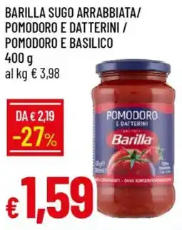 | Barilla sugo arrabbiata/ pomodoro e datterini / pomodoro e basilico 400 g | IperFamila | €2,19 | €1,59 | -27% | 22 gennaio 2026 | 01 febbraio 2026 | |