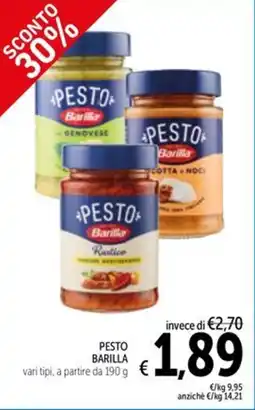 | Pesto BARILLA 190 g | Spazio Conad | €2,70 | €1,89 | €0,81 Sconto | 17 aprile 2026 | 29 aprile 2026 | |