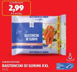 | Almare seafood bastoncini di surimi xxl 450 g | ALDI | €2,99 | 09 dicembre 2024 | 15 dicembre 2024 | |||
