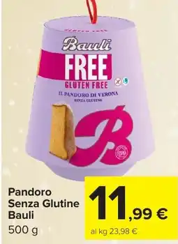 | Pandoro Senza Glutine Bauli 500 g | Carrefour Market | €11,99 | 16 dicembre 2025 | 01 gennaio 2026 | |||