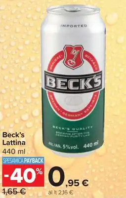 | Beck's Lattina 440 ml | Carrefour Market | €1,65 | €0,95 | -40% | 21 aprile 2026 | 04 maggio 2026 | |