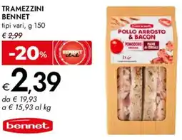 | 1 | Tramezzini BENNET 150 g | Bennet | €2,99 | €2,39 | -20% | 07 aprile 2026 | 22 aprile 2026 | Guarda l'offerta | |