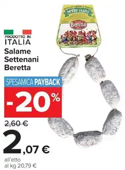 | Salame settenani beretta | Carrefour Market | €2,60 | €2,08 | €0,52 Sconto | 23 agosto 2022 | 01 settembre 2022 | |