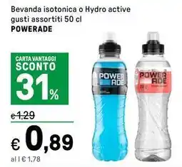 | Bevanda isotonica gusti assortiti 50 cl POWERADE | Iper La Grande | €1,29 | €0,89 | €0,40 Sconto | 29 febbraio 2024 | 10 marzo 2024 | |