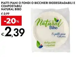 ![]() | Piatti piani o fondi o bicchieri biodegradabili e compostabili NATURAL BIBO | Bennet | €2,99 | €2,39 | -20% | 25 settembre 2025 | 08 ottobre 2025 |