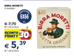 | BIRRA MORETTI CONFEZIONE 6X66 CL | Esselunga | €7,85 | €5,49 | €2,36 Sconto | 16 agosto 2024 | 28 agosto 2024 | |