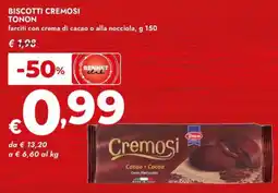 | Biscotti cremosi TONON 150 g | Bennet | €1,98 | €0,99 | -50% | 27 marzo 2025 | 09 aprile 2025 | |