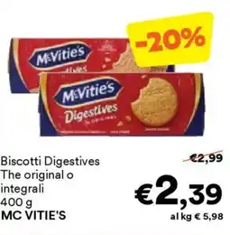 | Biscotti Digestives The original o integrali MC VITIE'S 400 g | Unes | €2,99 | €2,39 | -20% | 16 febbraio 2026 | 26 febbraio 2026 | |