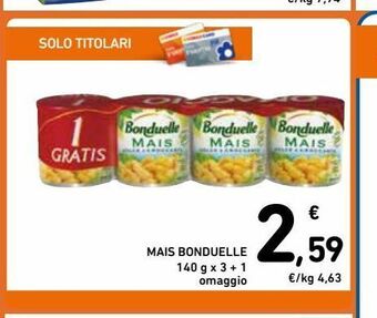 | Mais BONDUELLE | Spazio Conad | €2,89 | 140 g x 3+1 omaggio | 23 giugno 2025 | 02 luglio 2025 | ||