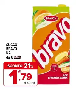 | 2 | Rauch succo bravo 2 lt | Iperal | €2,29 | €1,79 | €0,50 Sconto | 08 aprile 2026 | 21 aprile 2026 | Guarda l'offerta | |