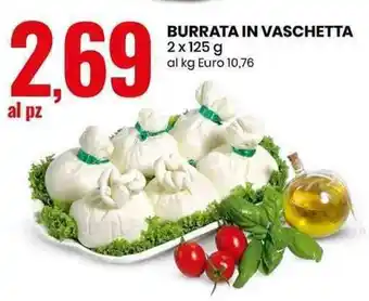 | BURRATA IN VASCHETTA 2 x 125 | Eurospin | €2,69 | 29 aprile 2024 | 05 maggio 2024 | |||